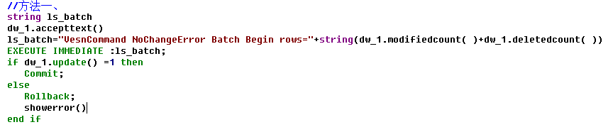 注:如果 DataWidnow 使用批量提交,错误将会在最后一条语句返回。DisableBind=0 不能使用批量更新。