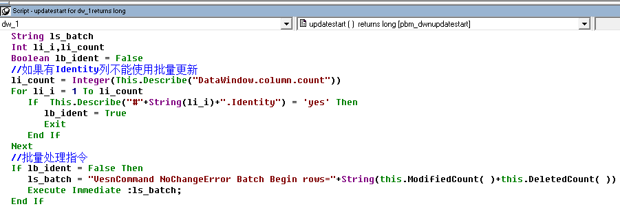 end if或者可以在 Datawindow 的UpdateStart函数里执行该语句。