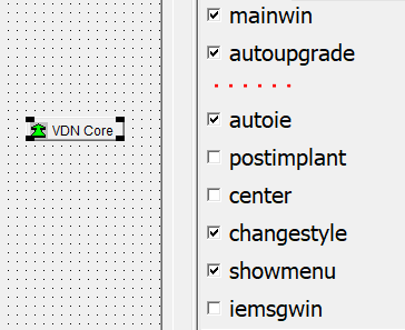 | MainWin | boolean | 表示该窗体为主窗体,升级消息会发送给该窗体。该属性主要避免打开了多个窗体上都有 v d n core 组件。 |